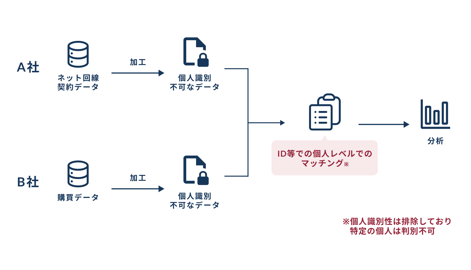 - A社のネット回線契約データと、B社の購買データを個人レベルでマッチング。