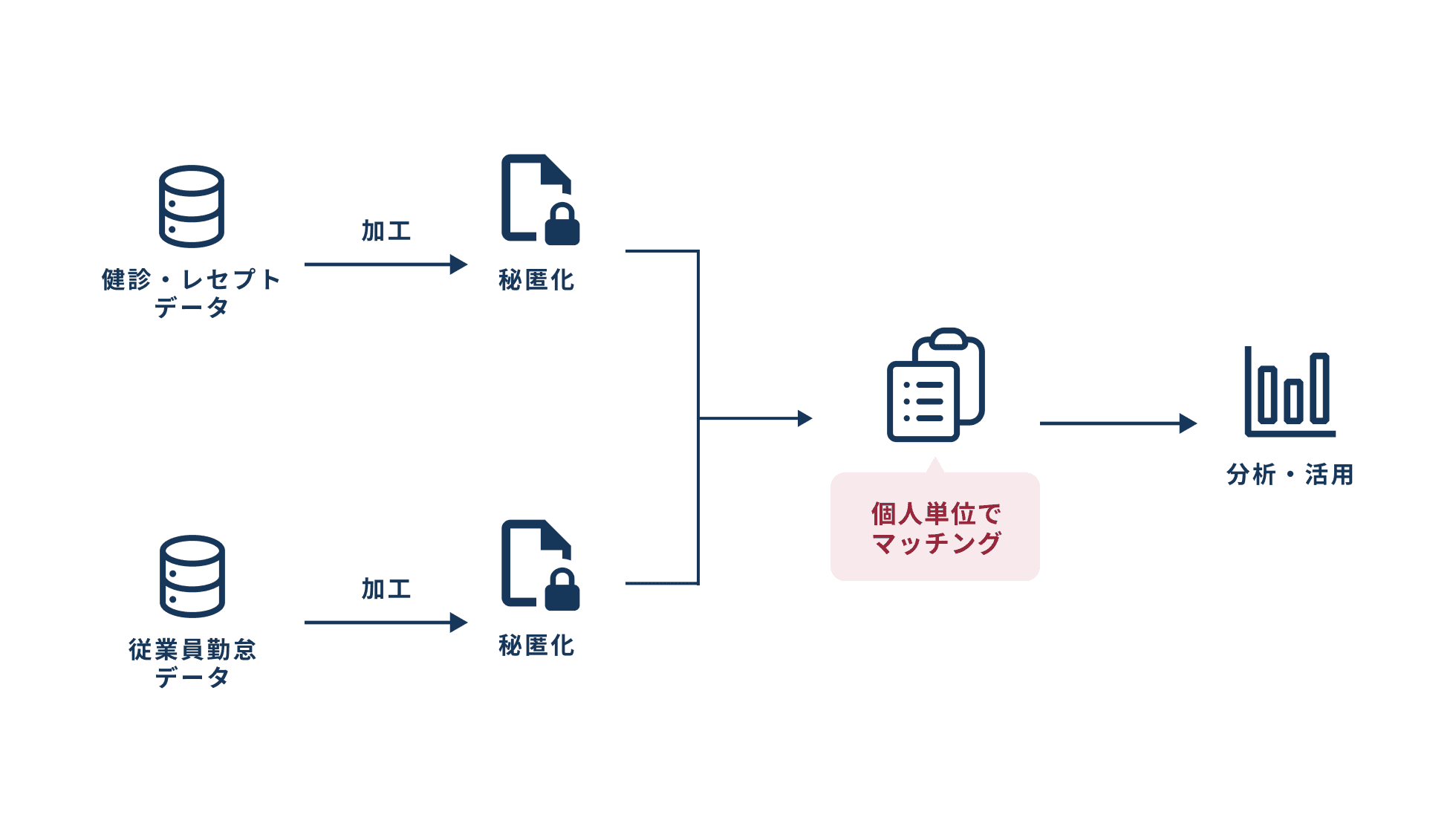 健康保険組合が保有する健診結果やレセプトデータ、企業が管理している従業員の勤怠データを連携させることで、働き方と健康状態の関係をより具体的に把握できます。
